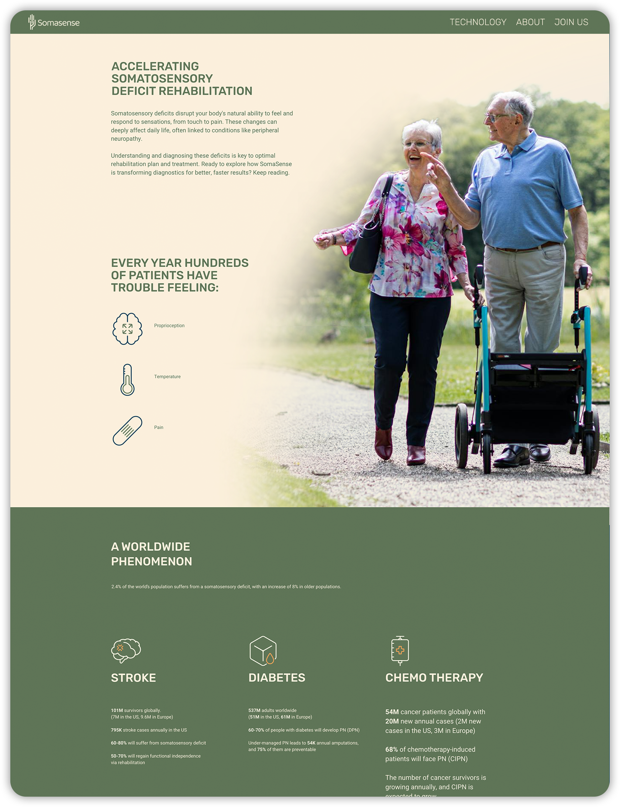 A website demonstrates the capabilities of a somatosensory deficits diagnostic device that is affordable, compact, and user-friendly.